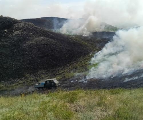 6 июня в 20:00 после грозы в 1 км к северо-востоку от участка "Айтуарская степь" заповедника "Оренбургский" на территории республики Казахстан было обнаружено возгорание.