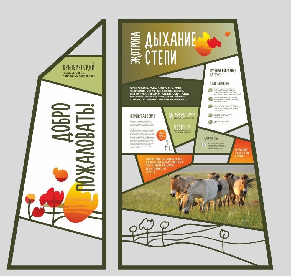 Большинство туристов, посетивших заповедник «Оренбургский», знакомы с экологической тропой «Дыхание степи». Они с удовольствием слушают рассказ экскурсовода о диких лошадях, знакомятся с информацией на стендах и делают фото на фоне лошадей Пржевальского в акклиматизационных загонах. Экологическая тропа является визитной карточкой нашего заповедника и неотъемлемой частью национального туристического маршрута. Почти за 10 лет эту экотропу посетило более 20 тысяч человек, и мы рады, что интерес к ней с каждым годом только растет.